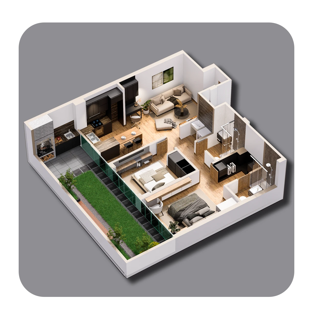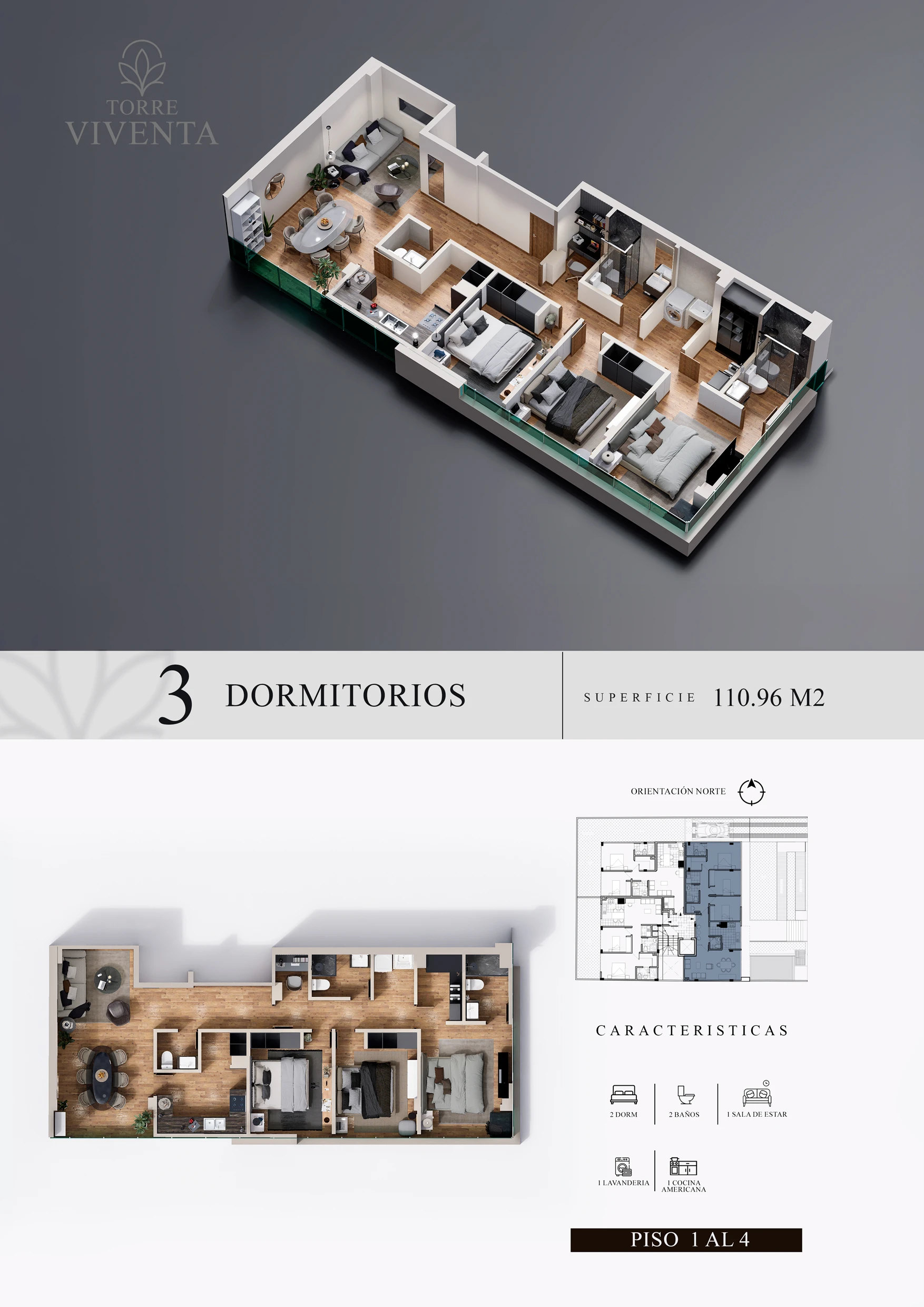 TORRE VIVENTA destaca también por su amplio frontis de 19.98 metros, a solo una cuadra y media de la Plaza Tres Pasos al Frente, también conocida como la Plaza de Los Chicharrones. El entorno combina ciudad, tiendas, negocios y restaurantes, brindando una vida diaria práctica y activa.